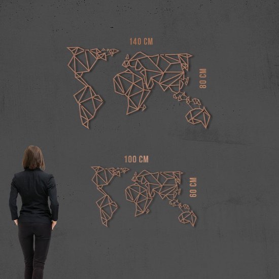 Metalen Wereldkaart Brons - Hoagard | 60 x 100 cm | Metal ...