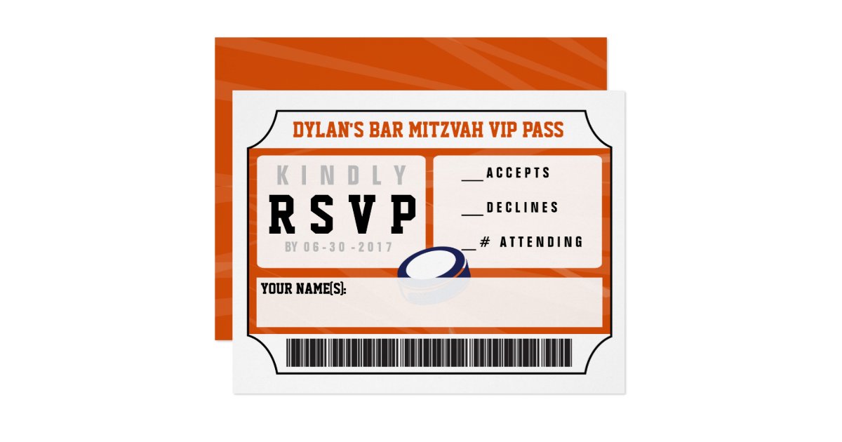 HOCKEY VIP REPLY CARD Bar Bat Mitzvah Invitation | Zazzle.com