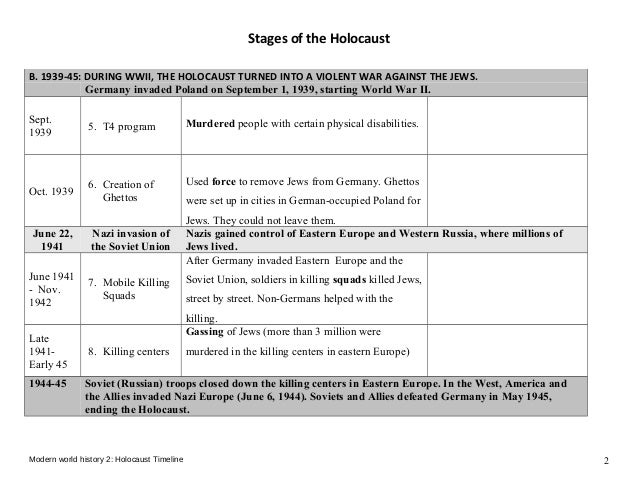 Holocaust Timeline With Pictures. A timeline of the Holocaust is detailed in the events listed below. Make educational timelines or create a timeline for your company website.
