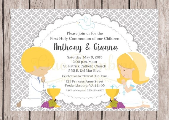 Boy and Girl Twins First Communion Invitation | Holy ...