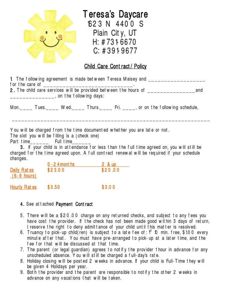 Opening a daycare takes careful planning. How to create an in home daycare contract. Or do you prefer to have everything listed in your contract instead?