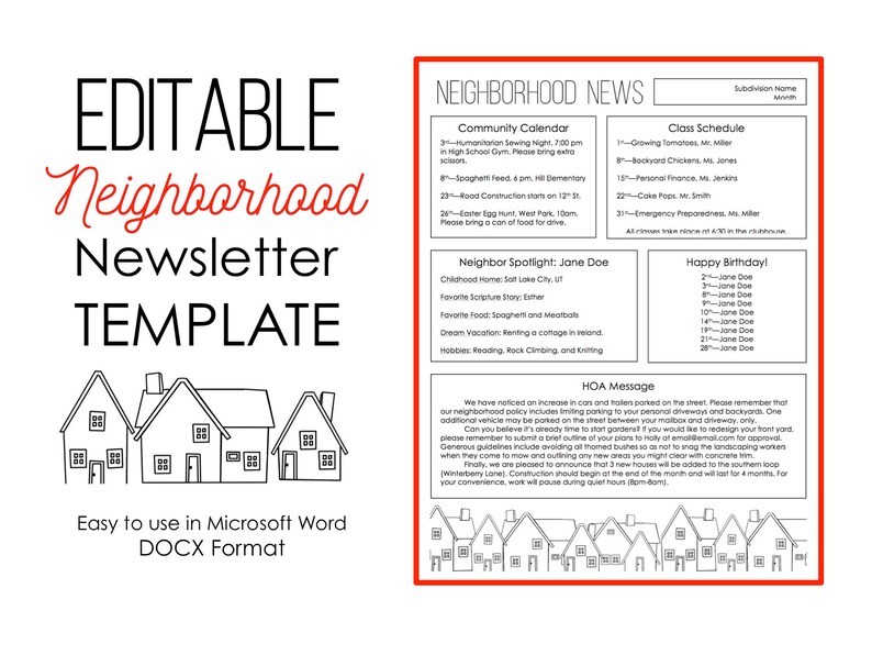 Newsletter Template for Microsoft Word Neighborhood | Etsy