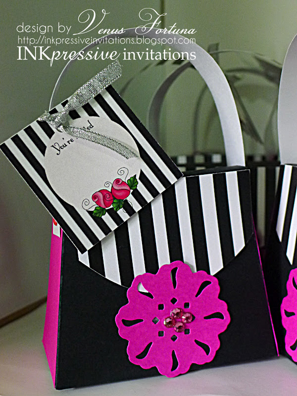 PURSE INVITATION HOT PINK BLACK AND WHITE STRIPES ...