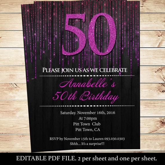 50th Hot Pink Glitter modern party invitation | Pink and ...