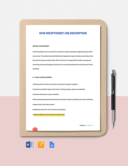 FREE Gym Front Desk Receptionist Job Description Template ...