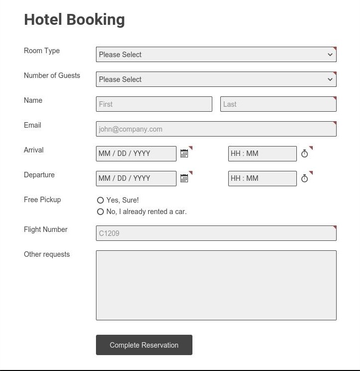 Order payment and reservation forms are one of the most important business forms you will use. Back in the days, to make a reservation, either they would need to call. Use the pre-built hotel reservation form template or build your form from scratch using a blank This table field will help to identify and classify room types, specifications, meal preferences and so on for Personalize your hotel reservation form in no time, with no stress.