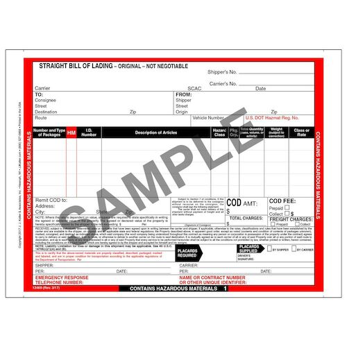 Hazardous Materials Straight Bill of Lading - 5 Entry ...