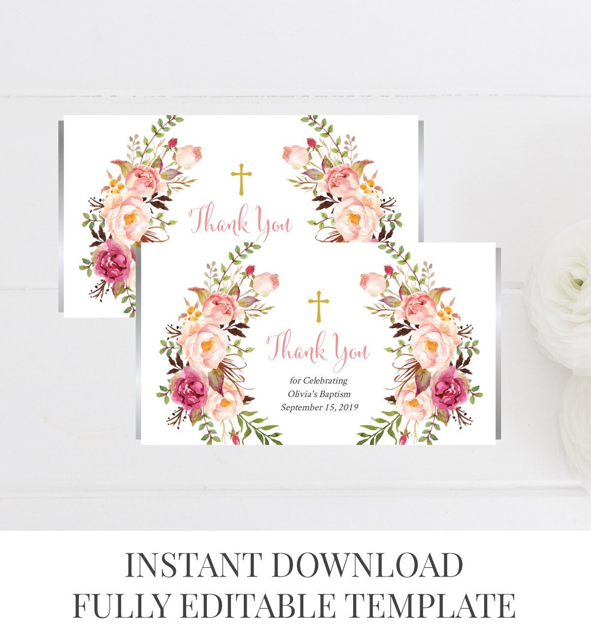 Pink Gold Boho Floral Baptism Candy Bar Editable Wrapper ...