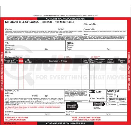 957 by JJ KELLER - Hazardous Materials Straight Bill Of ...