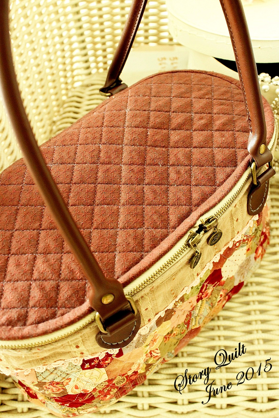 Welcome to Story Quilt: Hexagon patchwork basket bag.