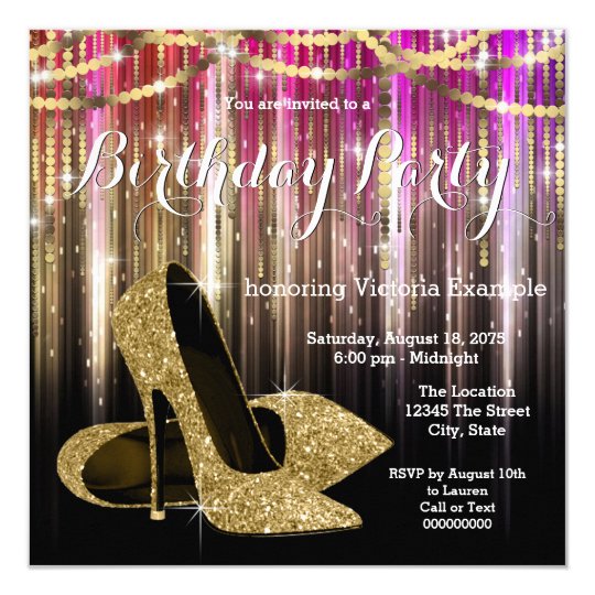 Black Gold High Heels Womans Birthday Party Invitation ...