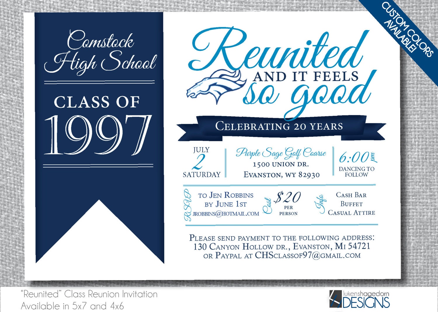 They can be for anything else too with a little bit of personalization. The friends of American Pie are back for American Reunion, and even though everyone is older, there are. Materials. high school reunion invitation, class reunion invitation, reunion, reunited DIGITAL orders: WE edit, YOU print *Please send us your details* You will receive: - high resolution jpeg file - high resolution pdf with two per page - high resolution pdf with.