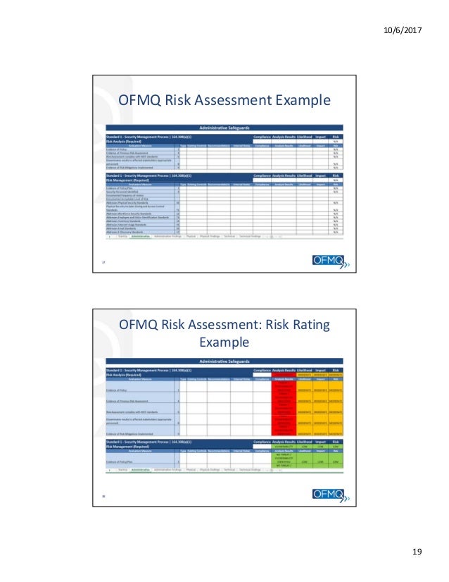 Medical Economics recommends performing a risk assessment based on the answers to the following questions IT risk assessment (or "risk analysis" as HIPAA refers to it) is one of the key requirements for HIPAA compliance. Conduct an accurate and thorough assessment of the potential risks and vulnerabilities to the. HIPAA's Breach Notification Rule requires covered entities to notify patients when their unsecured protected heath information (PHI) is impermissibly used or disclosed—or "breached Covered entities may always begin the breach notification process without conducting a formal risk assessment.